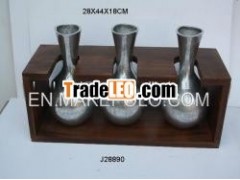 Cast aluminium Vases In rough Nickel finish and wooden stand